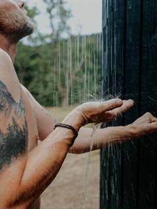 Step from the deep heat into the cool air and feel the reset begin under the outdoor shower.