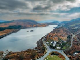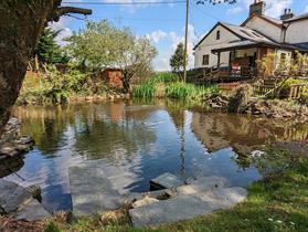 By Car: From the Blaenau Ffestiniog roundabout, take A496, south and downhill after 3/4 mile (follow our brown and white tourism signs) turn right and immediate left, following the signs for Ffestiniog Railway and Ffestiniog Power Station, down the road with white railings. Past the lake, turn left and the house is on the right. We are on the lake, last building before the hydro power station. There is a halh mile long ramp coming out of the mountain which delivered slate to our garden / ffestiniog railway