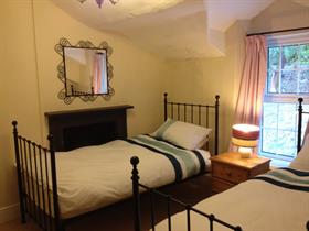 The double bedroom has original slate flooring and lightly painted walls. It has plenty of drawer space for your clothes and an electric heater for those cooler nights.