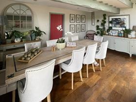 In the kitchen, you’ll find a comfortable space with an abundance of crockery, cutlery, kitchen gadgets, serving dishes, boards, and pantry staples. The main kitchen features an Everhot range, dishwasher, American fridge freezer with ice and water, and a second fridge. There are also pantry cupboards, a Quooker Tap for instant boiling water, as well as appliances like a toaster, toastie maker, stand mixer, hand mixer, and blender. Ten people can comfortably sit at the kitchen table. We provide a trip-trapp high chair (including a baby set) and chair covers for guests who have young children.